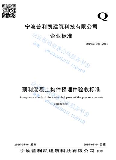 继自主研发的发明专利正式授权后,普利凯公司又新推出了三个企业技术标准,分别是:《预制混凝土构件预埋件验收标准》、《预制混凝土夹心保温外墙板》和《预制自保温陶粒混凝土外墙板》。技术标准是标准化管理体系的核心,是实现产品质量的重要前提。这三个技术标准是对公司生产相关的各种技术条件以及产品验收标准。任何企业都应以其高质量的产品标准为中心,建立企业技术标准,为客户带来高质量的产品和最高效的技术。